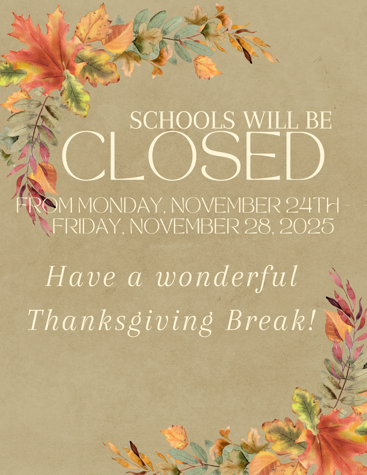 Thanksgiving Break Information