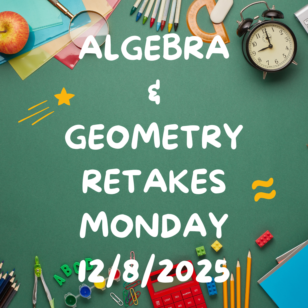 Algebra Retake Testing Monday, Dec. 8th